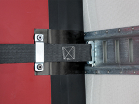 The E and F Straps on the bulkhead attaches to the tracks on the side of the trailer walls. Installed with flush mounted hardware and comes with a UHMW abrasion guard to protect against premature wear from the track.